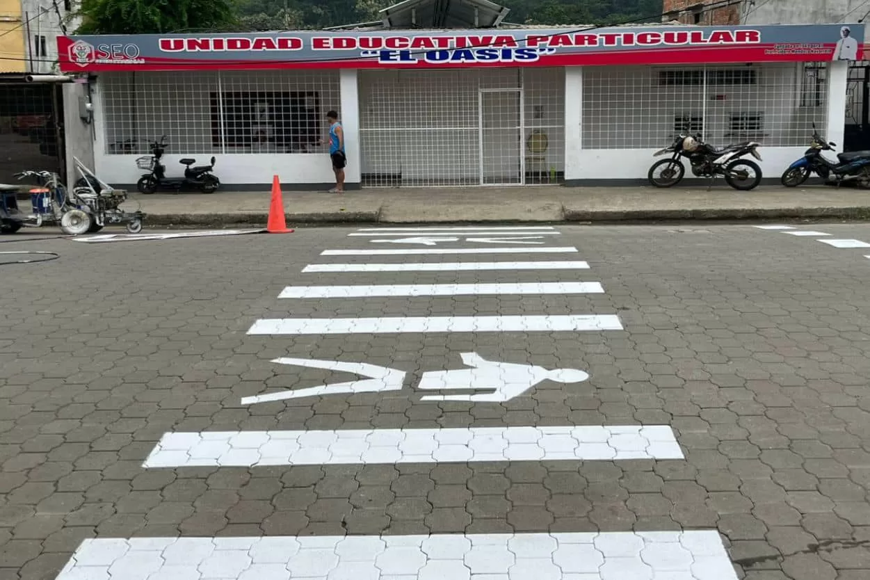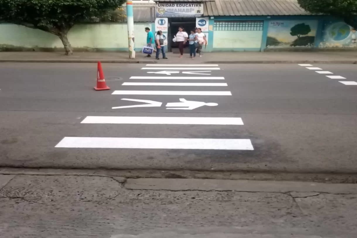 Desde Chone Vial iniciamos con la señalización horizontal de pasos cebras en varias entidades educativas de la ciudad, esta iniciativa busca promover un entorno seguro y organizado.